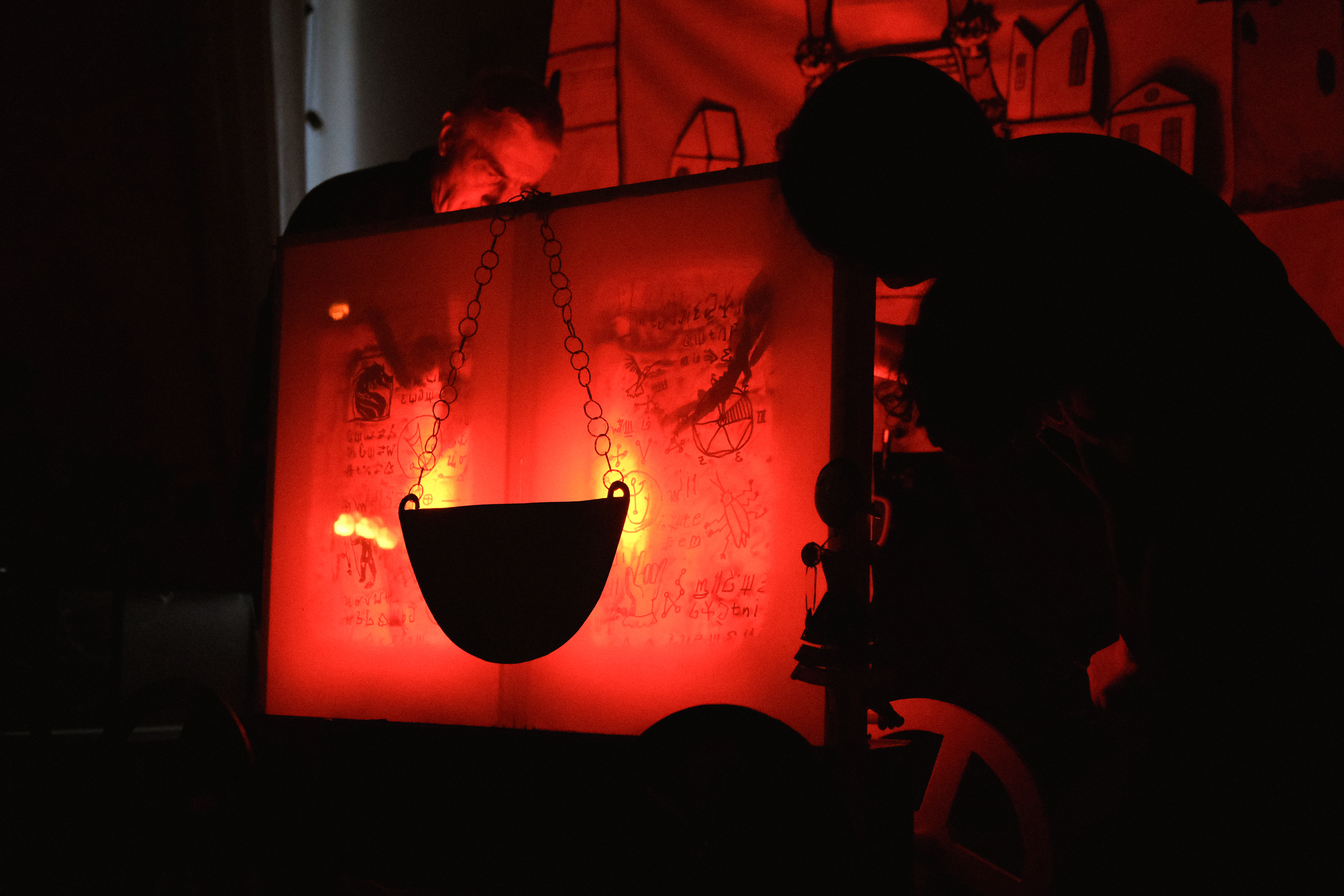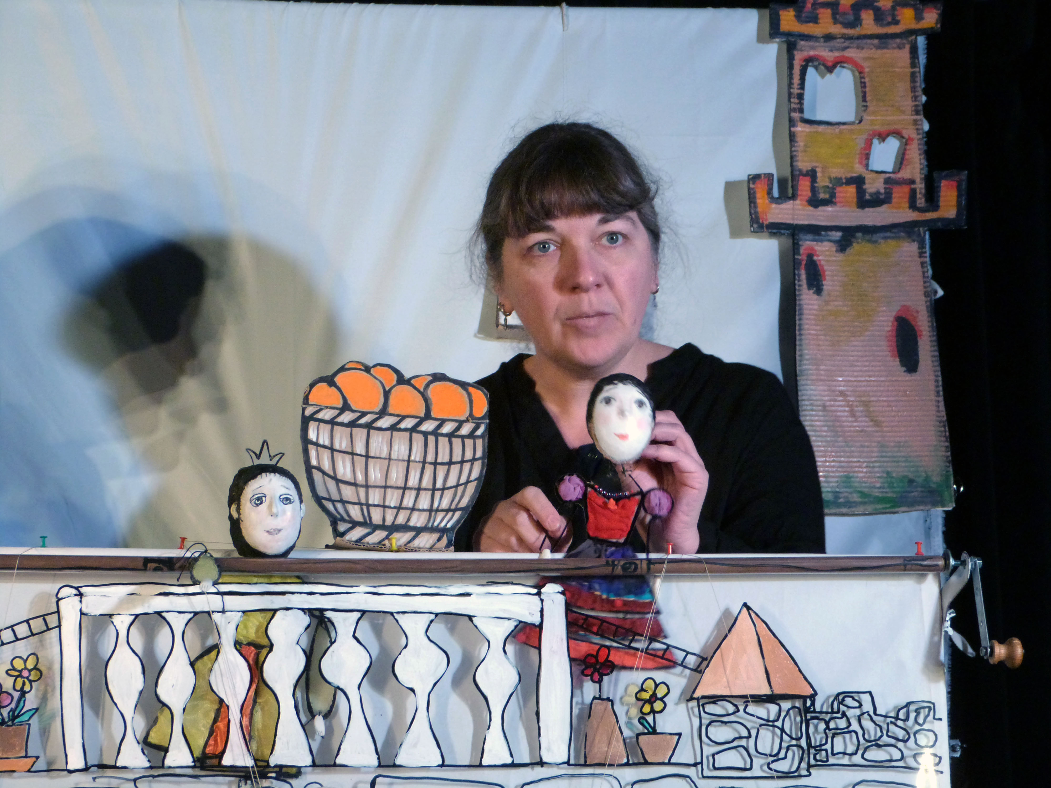 Нужны затемнение, розетка 220V и свободное пространство перед зрителями. Всё остальное — свет, звук, куклы и декорации — мы привозим с собой.
